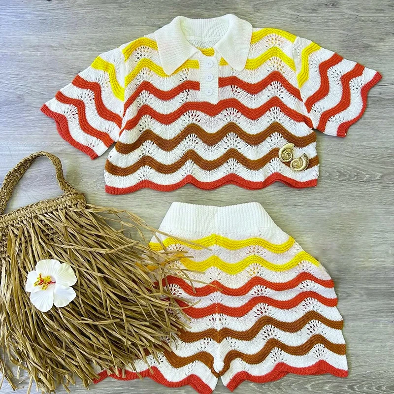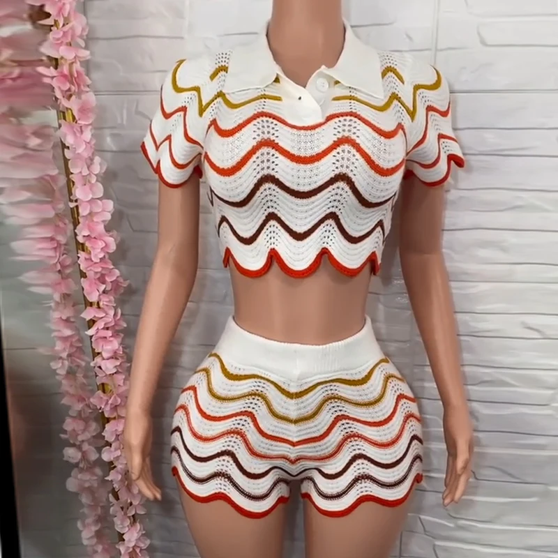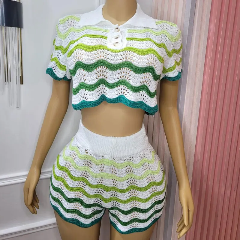 Huili Manufacturer Short Sleeve Crop Top & Shorts 2025 Loungewear Knitted Custom logo Corset Two Piece Set Women Clothing
